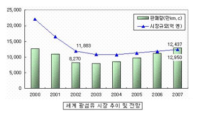 ±¤½ÅÈ£ Àü¼Û±â¼úÀÇ ½ÃÀå ȯ°æÀ» º¸¸é, 1999³âºÎÅÍ 2000³â¿¡ °ÉÃÄ ¼¼°è ±¤Åë½Å ½ÃÀåÀº Æø¹ßÀûÀÎ ¼ºÀåÀ» ÇÏ¿´´Ù. ±×·¯³ª 2000³â°æºÎÅÍ À¯·´°ú ¹Ì±¹¿¡¼ ÅðÁ¶ÀÇ Â¡Èİ¡ ³ªÅ¸³ª±â ½ÃÀÛÇÑ Åë½Å »ê¾÷°è´Â ÀÌÈÄ ÁÖ°¡, À繫±¸Á¶, ¼öÀͼº µî °¢Á¾ ÁöÇ¥°¡ ±Þ°ÝÈ÷ ¾ÇȵǾú´Ù. ´õ¿íÀÌ 2001³âºÎÅÍ´Â Åë½Å ºÒȲÀÌ È®»êµÇ¸é¼ ±¹Á¦È Àü·«ÀÇ Ã¶È¸, ½Å±ÔÅõÀÚ °¨¼Ò, ±â¾÷ÆÄ»ê µîÀ» ¾ß±âÇß°í, 2002³â¿¡ µé¾î¼´Â ¸¶Ä§³» ¼¼°è ÃÖ´ëÀÇ ÀÎÅÍ³Ý ¸Á ¿î¿µ¾÷üÀÌÀÚ ¹Ì±¹ 2À§ÀÇ Àå°Å¸® ÀüÈ »ç¾÷ÀÚÀÎ ¿ùµåÄÄ(WorldCom)ÀÌ »ç»ó ÃÖ´ë ±Ô¸ðÀÇ ÆÄ»êÀ» Çϱ⿡ À̸£·¶´Ù. ÀÌ¿Í °°Àº Åë½Å »ç¾÷ÀÚµéÀÇ °æ¿µ½ÇÀû ºÎÁø°ú ¼öÀÍ ºÎÀç´Â ±¤ ÀÎÇÁ¶ó, Áï ½Å±Ô ³×Æ®¿öÅ© Áõ¼³ ½ÃÀåÀÇ ³Ã°¢À¸·Î À̾îÁ³°í, ¿¬¼âÀûÀ¸·Î ±¤Åë½Å ºÎǰ ¾÷üµéÀÇ °æ±âµµ ³Ã°¢µÇ¾ú´Ù. 2000³â¿¡ ¾à 70¾ï ´Þ·¯ÀÇ ½ÃÀåÀ» Çü¼ºÇÏ¿© Á¤Á¡¿¡ À̸¥ ÀÌÈÄ Áö³ÇرîÁö ±Þ¼ÓÇÑ Çϰ °î¼±À» ±×·Á ¿Ô´Ù.